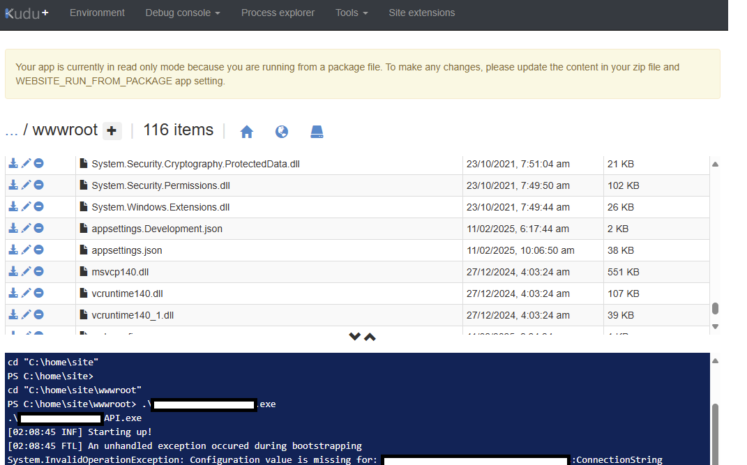 Recently, I had to debug a .NET API hosted in an Azure Web App. The API failed to bootstrap and returned only a generic error message, which provided little insight into the issue.